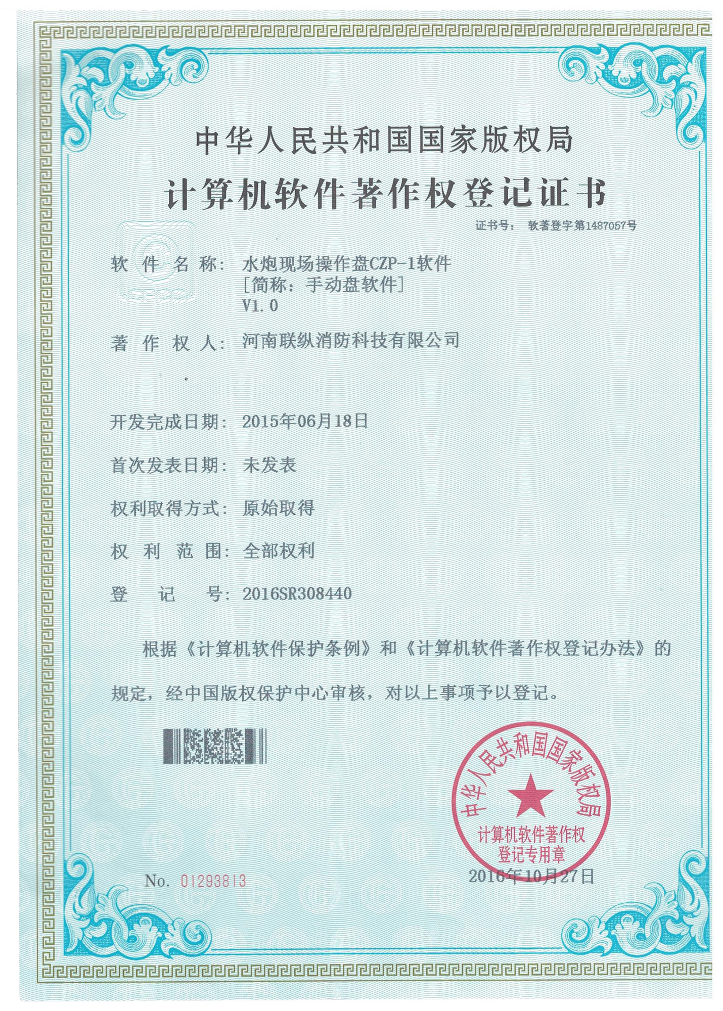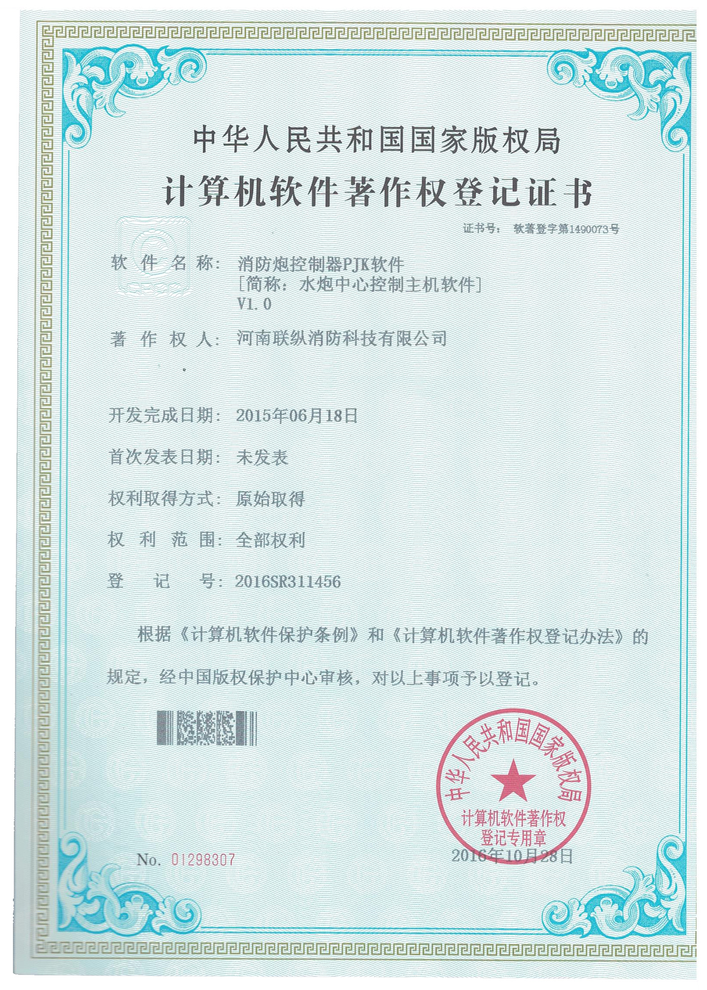 聯(lián)縱消防 專(zhuān)利證書(shū)